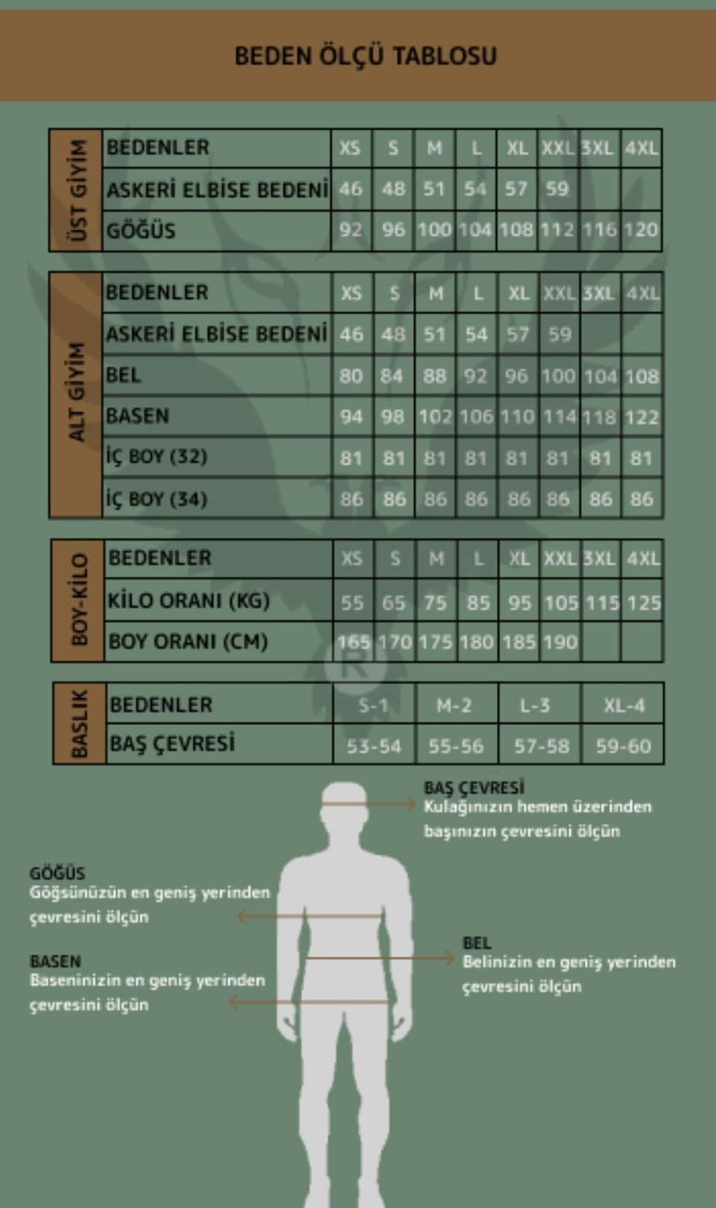 Mudeir Beden Tablosu | Barkan, Batur, Algan, Börü, Kaftan, Alp, Barlas, Uraz, Poyraz, Yalım, Umay, Tulpar, Ataman, Tayfun – Arditi Shop